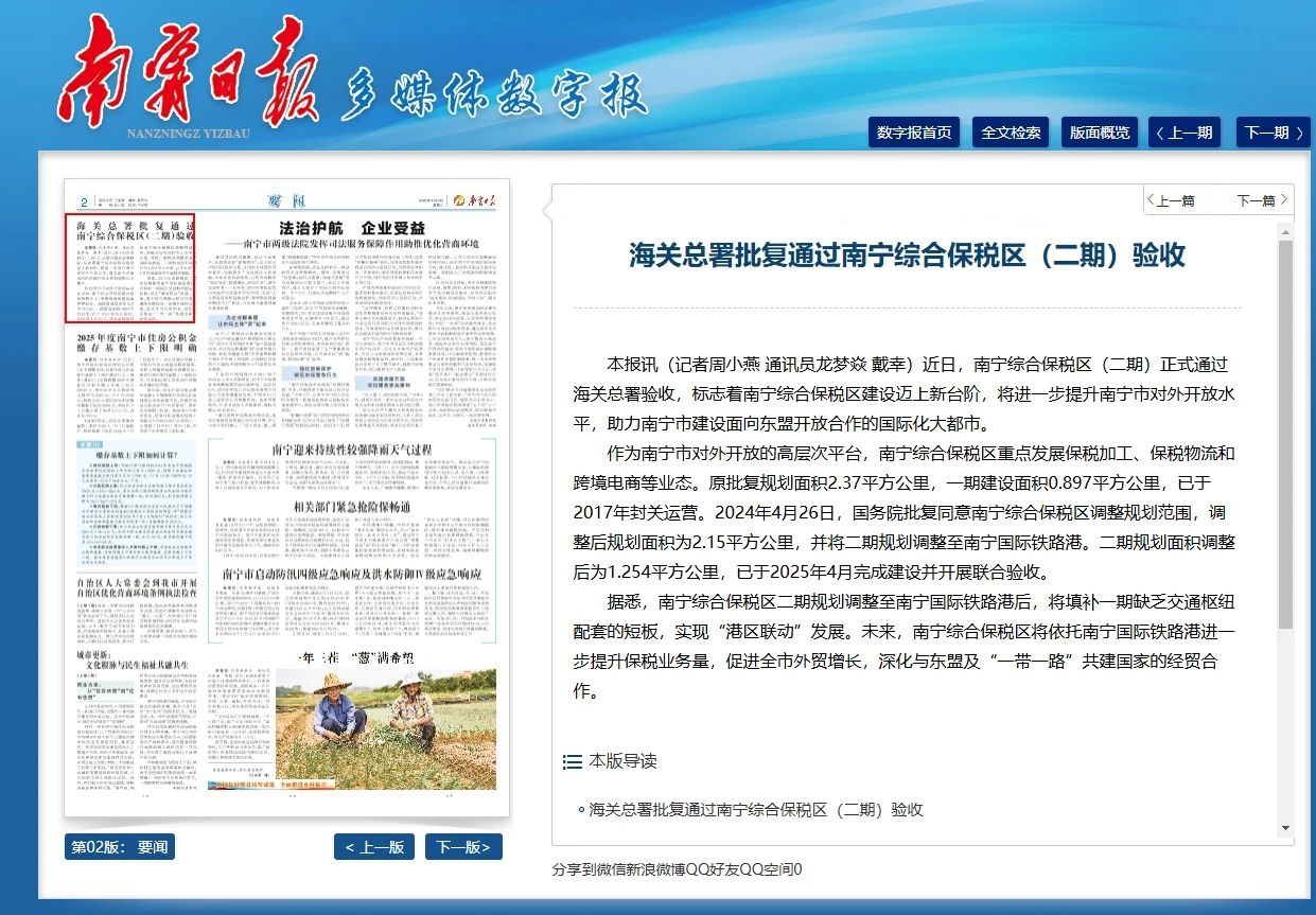 海關(guān)總署批復(fù)通過(guò)南寧綜合保稅區(qū)(二期)驗(yàn)收